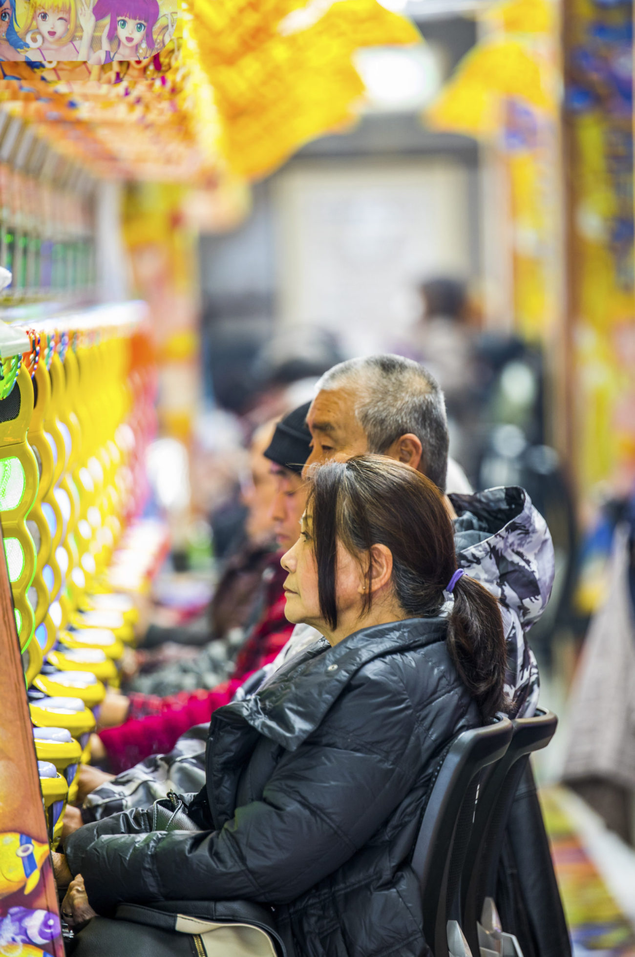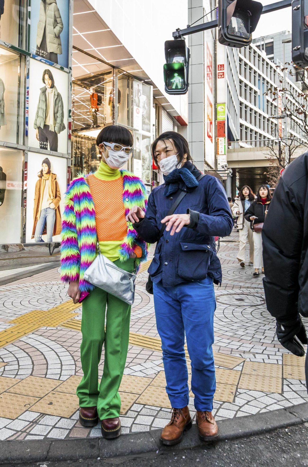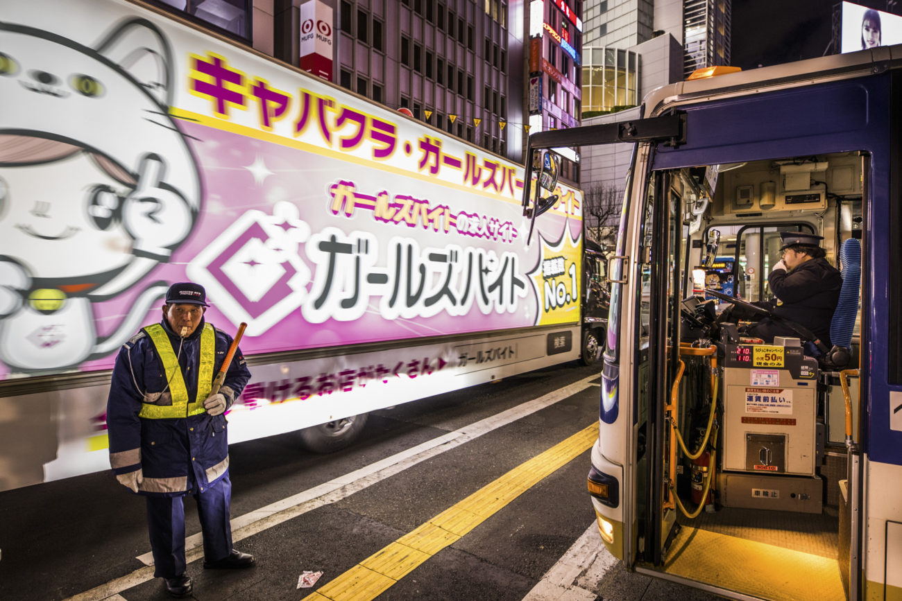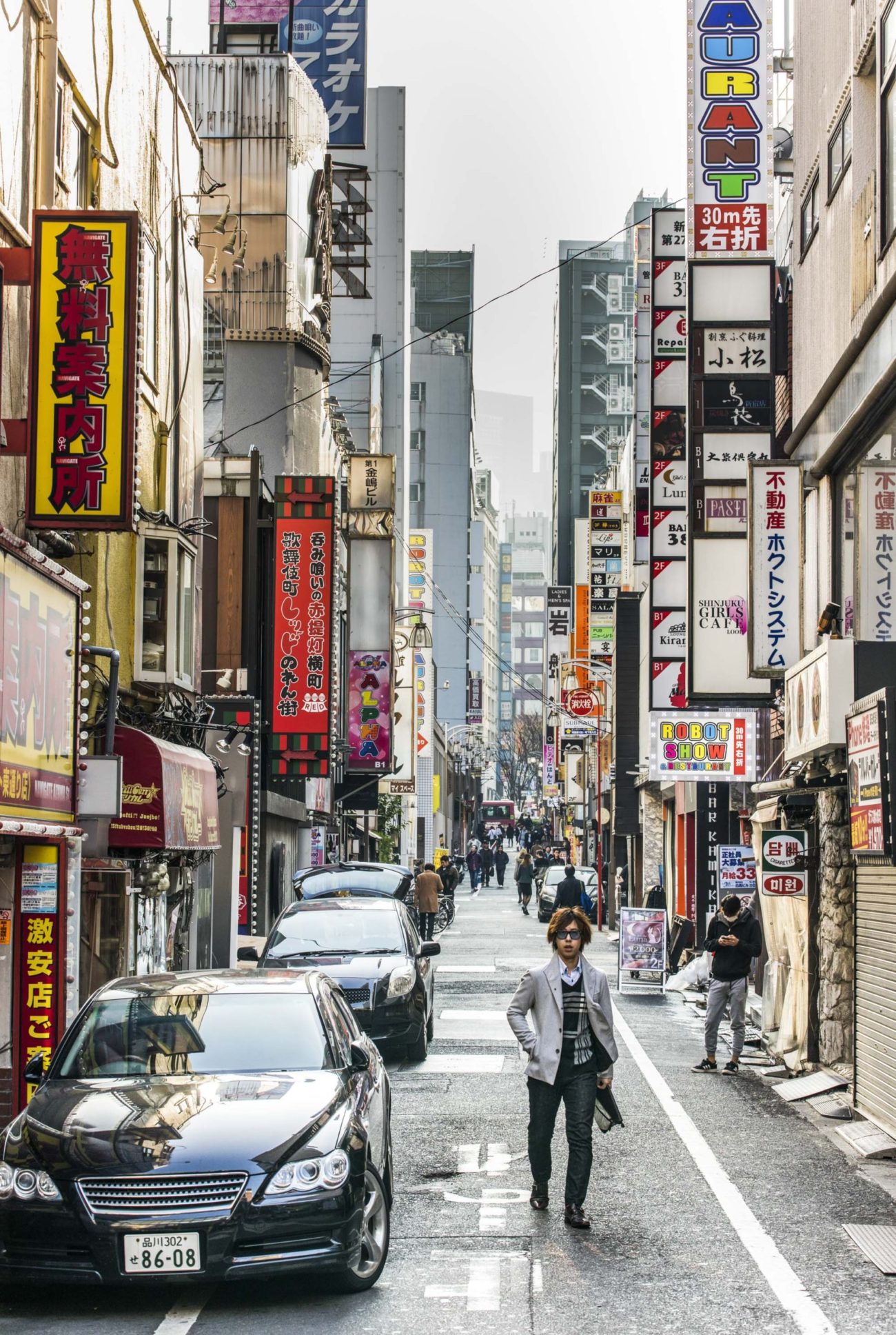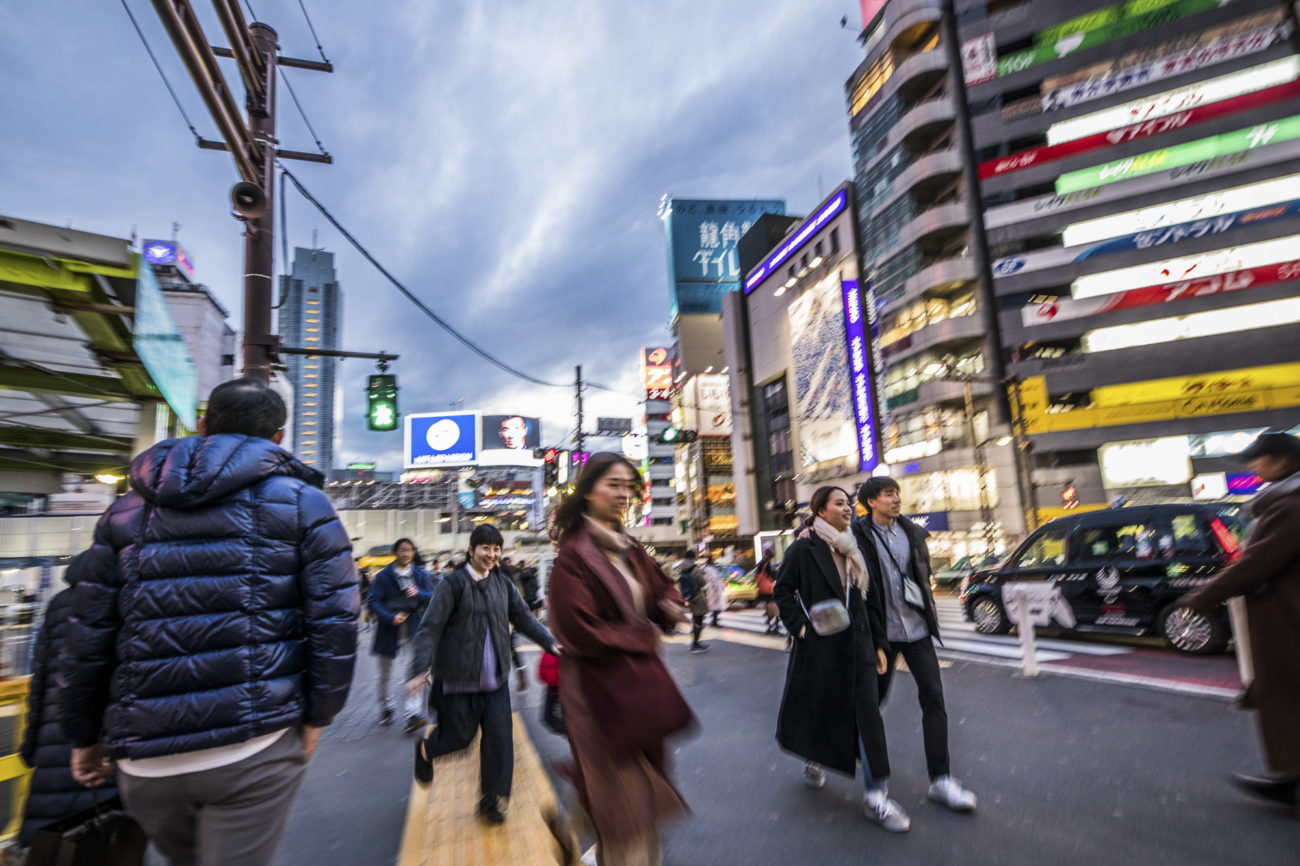Neon lights, skyscrapers and people in between